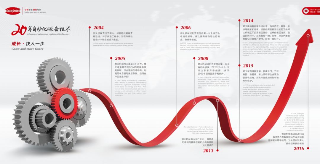 他們說這是不切實際,有一天有一臺機器會解決快速板材切割,只要放進去就會解決板材六個面的打孔問題 ......就讓他們稱之為不切實際吧!我們稱之為遠見!我們的企業(yè)宗旨并不是說做得多大,而是把企業(yè)做強,做長,強在競爭力;長在長久,我們計劃做百年企業(yè),所以需要時間去沉淀,去增加我們的底蘊,強大核心競爭力。2002年到2019年